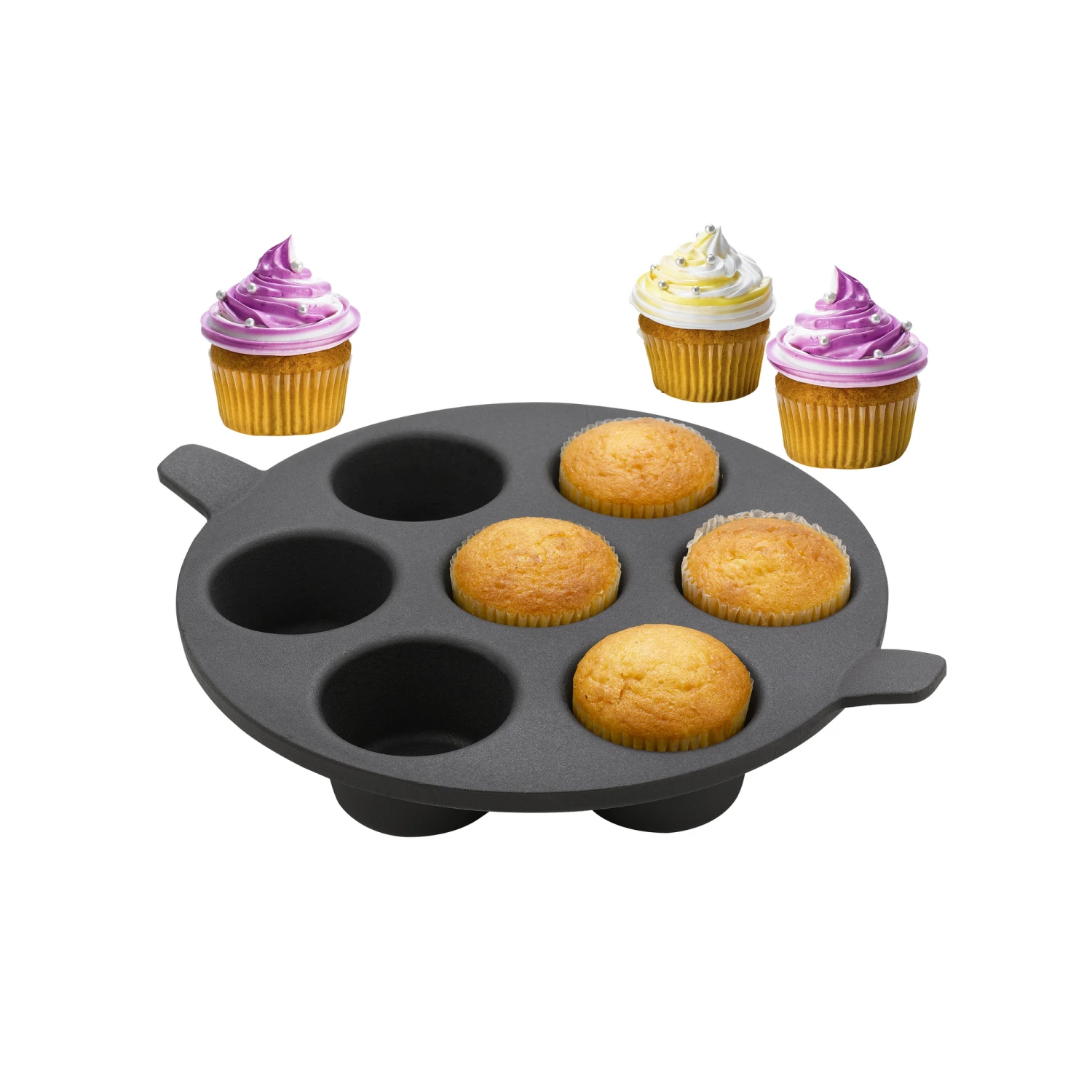 Der Gebäck-Einleger von tepro wird zusammen mit dem Rost-in-Rost-System mit 57 cm Durchmesser verwendet. Dank der 7 Einbuchtungen ist er besonders gut zum Backen von Brötchen, Muffins oder Ähnlichem geeignet. Er besteht aus Gusseisen und hat einen Durchmesser von ca. 32 cm.