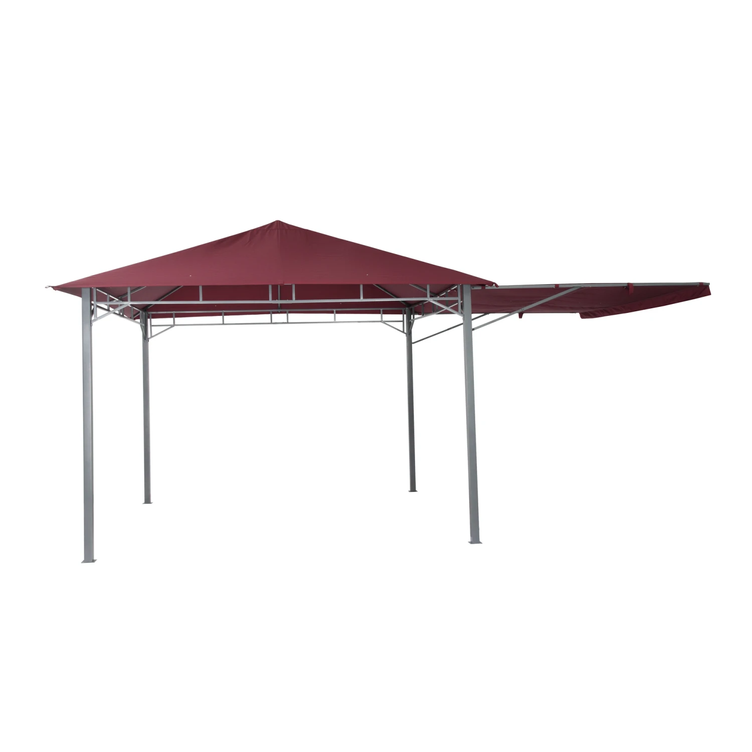 Lieferumfang: 1 x 5505G (Pavillongestell), 1 x 5505BU (Textilbespannung burgund), Abspannseile und Erdnägel