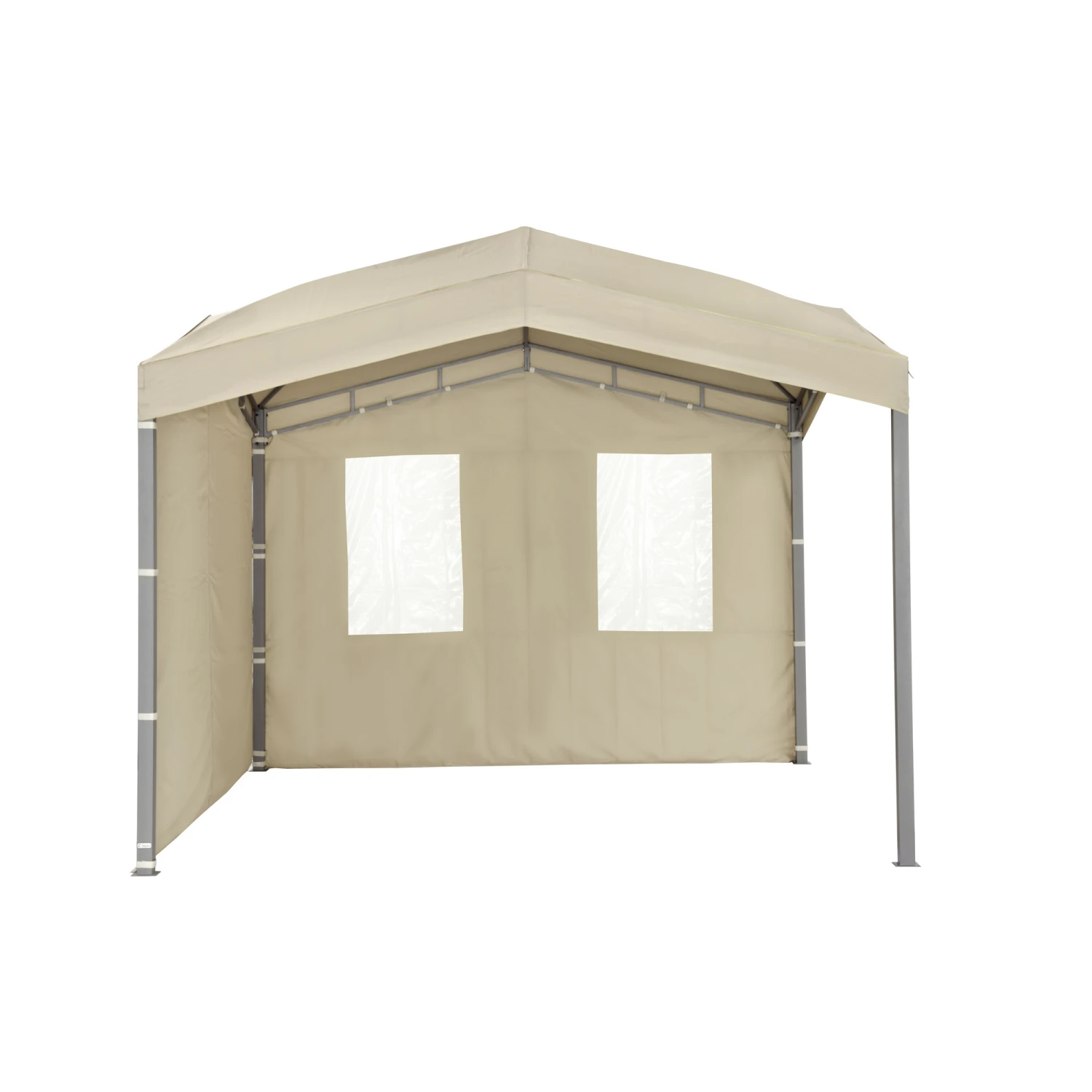Das Seitenteil-Set für Pavillons aus der Serie ‚Marabo‘ besteht aus einem geschlossenen Seitenteil und einem Seitenteil mit 2 Fenstern. Da beide Seitenteile PU-beschichtet sind, sind sie wasserabweisend und widerstandsfähig. Für zusätzliche Sicherheit sind sie außerdem feuerhemmend. Da die Befestigung der Seitenteile über Klettverschlüsse erfolgt, ist sie im Nu erledigt.
